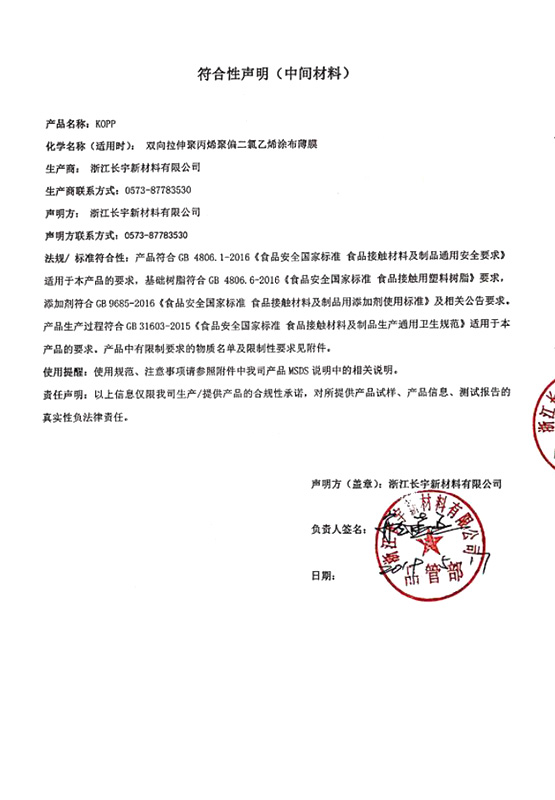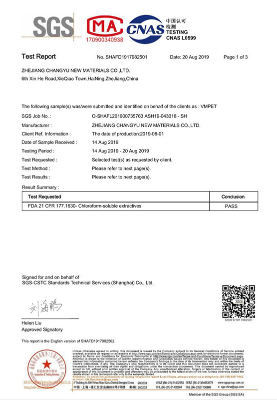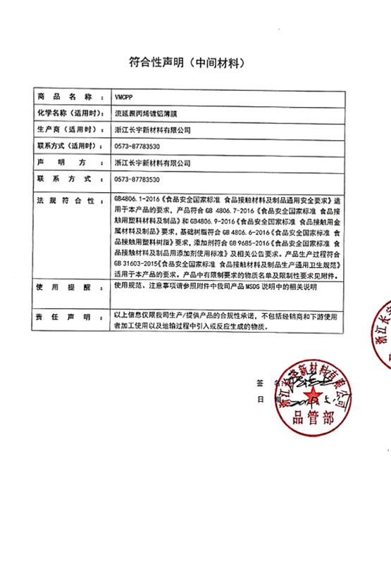 চাঙ্গ্যু চীনা বাজারে "স্বচ্ছ অ্যালুমিনিয়াম অক্সাইড ফিল্মের জন্য প্যাকেজিংয়ের জন্য" অগ্রণী এবং উকিল, আমরা এই পণ্যটির বিকাশ ও প্রচারের জন্য নিরবচ্ছিন্ন প্রচেষ্টা করেছি, চেঞ্জিয়ু চলমান প্রধান জাতীয় প্রজেক্টের "অক্সাইডস ব্যারিয়ার ট্রান্সপারেন্ট প্লাস্টিকস ল্যামিনেটেড ফিল্মস ল্যামিনেটেড ফিল্মগুলির জন্য মানসম্পন্ন সাধারণ নিয়ম এবং" খাদ্য প্যাকেজিংয়ের জন্যও অন্তর্ভুক্ত।